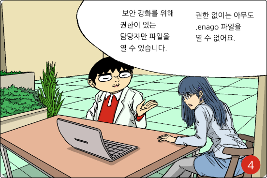 Enago Lock은 이나고의 보안 시스템으로 파일을 .enago 형식으로 변환하고, 승인된 관리자만 접근할 수 있도록 데이터 보안을 강화합니다.